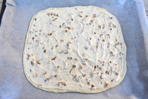 - Кремот рамномерно намачкајте го преку тестото.