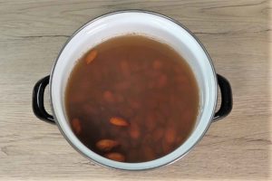 - Ставете ги бадемите во сад и прелијте ги со врела вода.200 г бадеми со лушпа