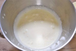 - Додадете ја смесата со брашно во течните состојки и добро измешајте.